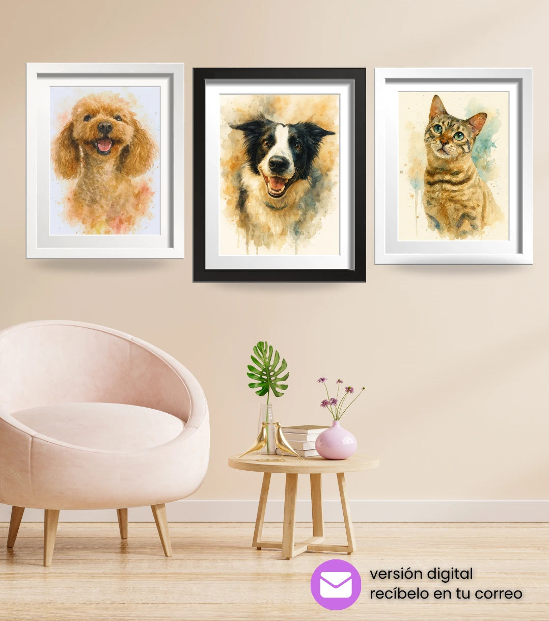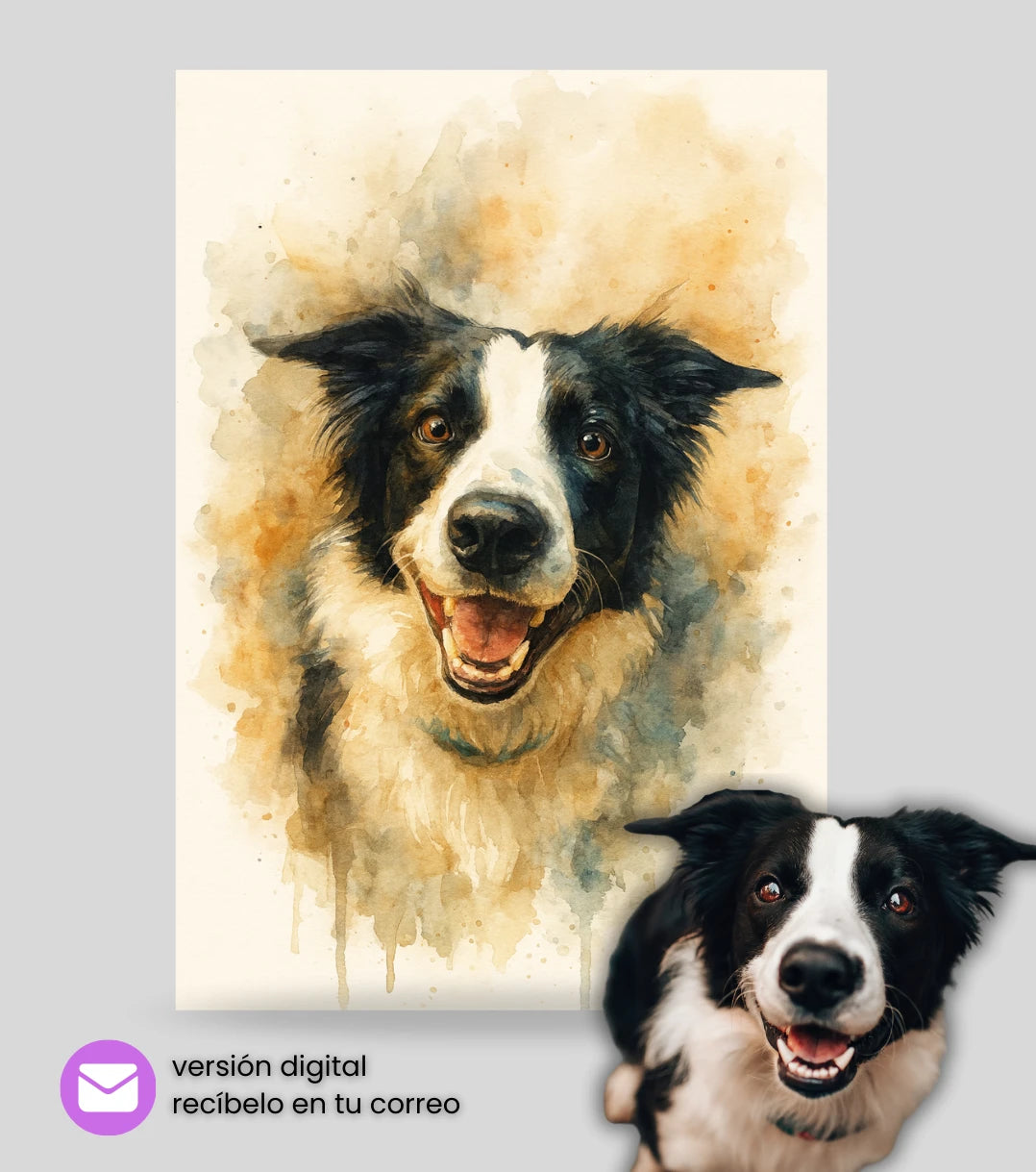 ✨ Haz tu pedido ahora y recibe en tu correo un retrato digital de tu mascota en estilo acuarela minimalista, una obra única para recordar y celebrar a tu compañero peludo.