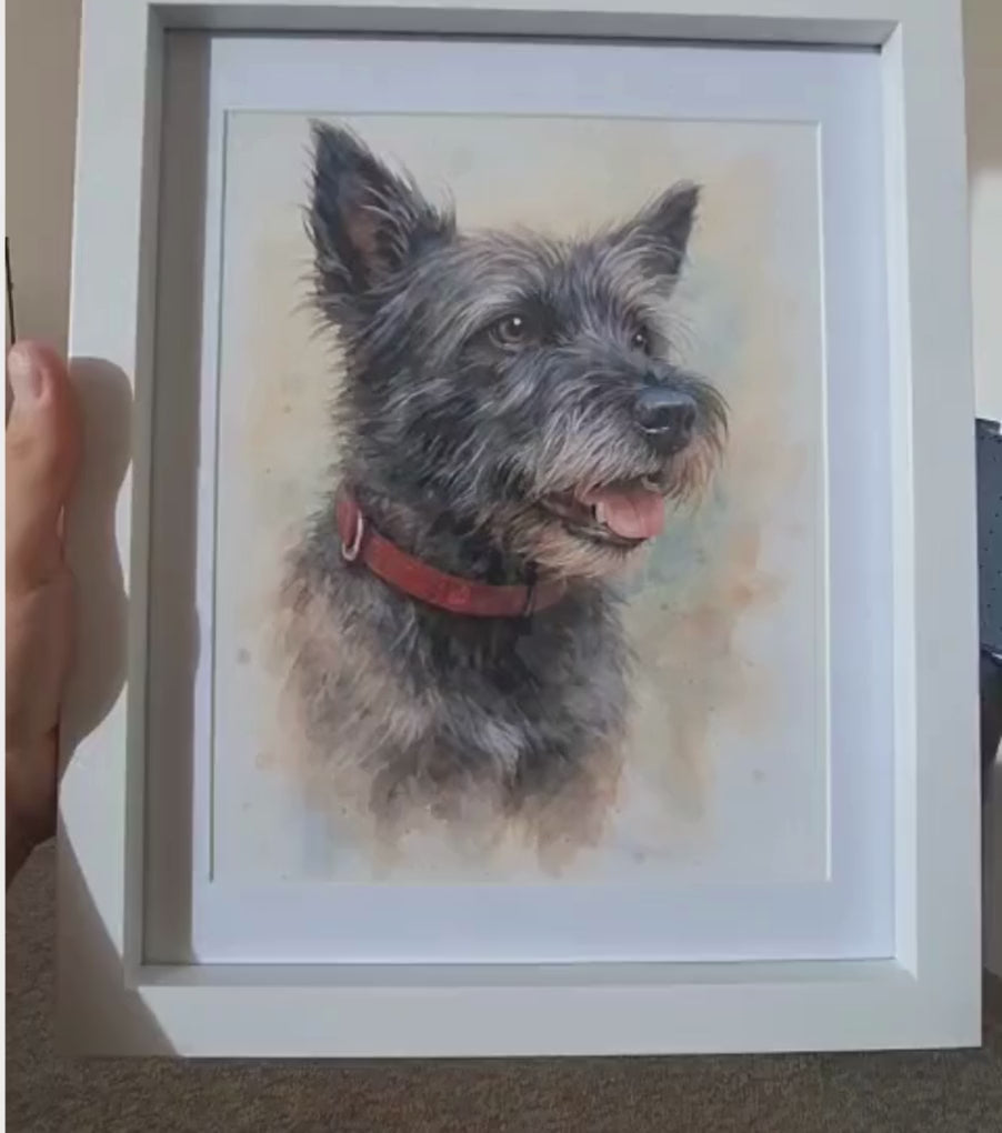 Retrato Enmarcado Mascota Personalizado Estilo Acuarela