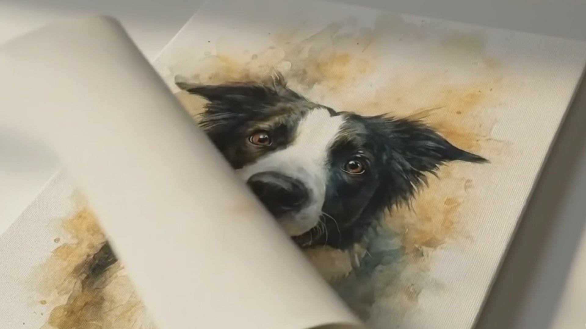 2️⃣ Creamos tu retrato digital en estilo acuarela, capturando la esencia y personalidad única de tu mascota.